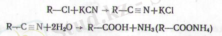 4. Галогеналкилдермен цианды калийдің әрекеттесуінен түзі-летін нитрилдердің (К-СЫ) гидролизі (сабындануы) :