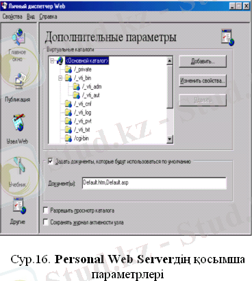 Windows ХР OSR2 де мұндай программа операциялық жүйеге қосылған және ол Microsoft Internet Explorer 3. 0 . деп аталады. Бірақта, ол қазір өте ескі программа болып саналады, сондықтан оның көмегімен беттердің мазмұнын көру кезінде қателер пайда болуы мүмкін. Сол себептен оны 4. 01 нұсқасына, тіптен жақсы 6. 0 нұсқасына аустырса. Соңғы нұсқаны Microsoft корпорациясының Web-сайтынан (http://www. microsoft. com/rus) еркін алуға болады немесе компакт - дискіден ( \IExplorer 6. 0 Rus ) орнатуға болады. Оны орнату процедурасы Windows ортада жұмыс істейтін стандартық программаларды орнатуымен бірдей, сондықтан қиіндықтарды тудырмауы қажет. Орнату барыснда таңдап алынған компонентері аса маңызды емес, өйткені керек жағдайда оларды проммаманың диструбутівнен алып орнатуға болады. Не ғұрлым броузердің нұсқасы жаңа болса, соғұрлым Internet Explorer жылдам және сенімді жұмыс істейді. Сіздің компьютеріңізде Web-беттердің мазмұнын қарап шығуға лайықты программа пайда болғаннан кейін Web-серверді орнатуға кірісуге болады. Бұл үшін Microsoft Personal Web Server программасын пайдалануға болады. Бұл программаның 4. 0 нұсқасын Windows ХР компакт-дискіде X:\Add-ons\Pws қапшығынан табуға болады, мұнда Х - CD-ROM дағы диск атауы. Windows ХР жүйсі бар компьютерге Web -серверді орнату алдында кейбір жүйелік библиотекаларды арнайы WinSock 2. 0 программа арқылы жаңарту қажет. Бұл программаны Microsoft корпорациясының Web-сайтынан http://www. microsoft. com/ windows/downloads/bin/W95ws2setup. exe адрестен немесе компакт - дискідегі WinSock 2. 0 қапшықтан алуға болады. Windows ХР және бұдан жоғары операциялық жүйелерде бұл жаңарту қажет емес. WinSock 2. 0 орнатылғаннан кейін компьютерді қайта жұктеу қажет, содан кейін Web -серверді орнатуға кірісуге болады. Орнату стандарттық операция арқылы жүзеге асырылады, яғни setup. exe программасын іске қосуымен (CD-ROMдағы \PWS қапшықтағы) . Бұны іске қосқан кезде осы программалар пакеттің негізгі мүмкіндіктерді бейнелейтін диалог терезесі пайда болады (6 - сурет) .