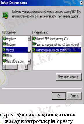 Бізге керегі Контроллер удаленного доступа . Соны таңдаймыз. Содан кейін ОК батырмасын басамыз, сонда Windows автоматты түрде өзіне керекті компоненттерді орнатады, яғни TCP/IP хаттамасын және Microsoft желісіне қатынас құру клиентті (4 - сурет) .
