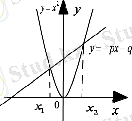 -түзу және парабола екі нүктеде қиылысуы мүмкін, қиылысу нүктесінің абциссасы квадрат теңдеудің түбірі болады.