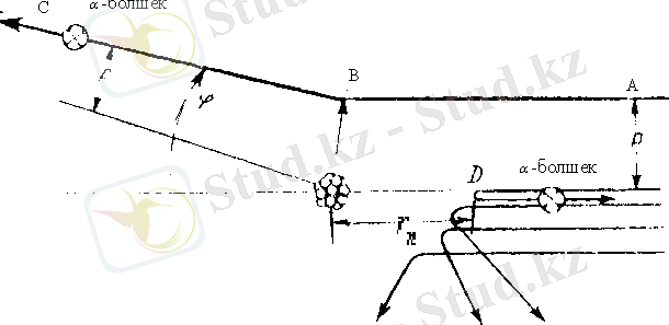 -бөлшек өзінің траекториясын өзгертіп АВС сызығының бойымен, яғни гипербола бойымен қозғалады, белгілі бір