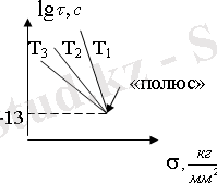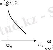 - σ тәуелділіктің тура сызықты жағын қарастырамыз. Барлық зерттелген материалдарға бұл теңдеудің орындалуы, жарамдылық мерзім жүктелген денеде өтетін қирау процесінің жинақталуына кетеді деп есептеуге болады. Бұған дәлел, үлгіні жүктеуді бірнеше рет тоқтатып, қайтадан сол шамаға жүктеген кездегі қирауға кеткен жарамдылық мерзім, тоқтаусыз үзбей жүктеген кездегі жарамдылық мерзімге қарағанда аз болғаны дәлел бола алады.