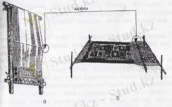Ауылдық жерде тұратын тұрғындардың түксіз кілем тоқуға арналған станоғы төртбұрышты көлбеу, өлшемі 350x200см (1 а сурет) немесе көлемдірек көлденең орналасқан ағаш рама (1 б сурет) .