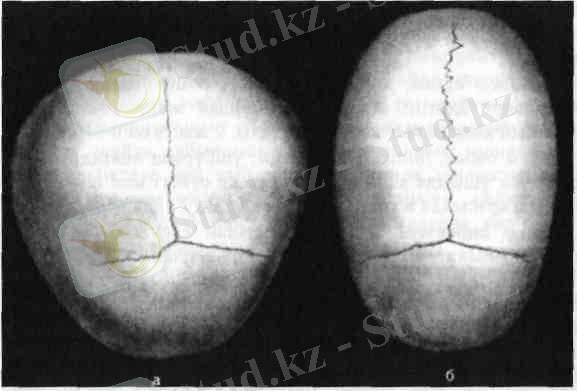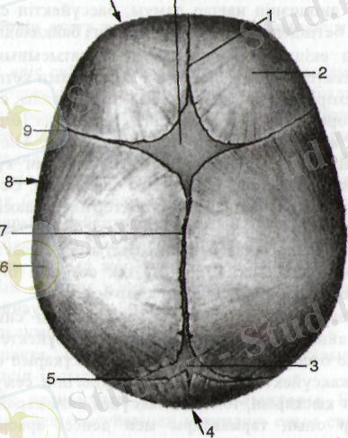 2 - с у р е т. Жаңа туған нәрестенің бассүйегі; жоғарыдан қарағандағы көрінісі.