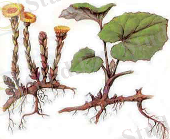 Өгей шөп - мать мачеха. Биіктігі 15 - 20 см, күрделі гүлдер тұқымдас, көп жылдық шөптес тектесөсімдік. Ерте көктемде тамыр сабағынан бір жылдық сабағы өсіп шығады. Мамыр айының екінші жартысында бұл сабақтар гүлдейді де солып қалады. Дәл осы кезде сағақтары ұзын, үш бұрышты жапырақтар тамырдан тікелей өсіп шығады. Осы жапырақтар дәрілік шикізат ретінде пайдаланылады. Сабағы тік өседі, жапырақтары гүлдегнн кезде ғана шығады. өсімдік наурыз айынан бастап, мамыр айының соңына дейін гүлдейді. Гүлдері сарғыш түсті, жеке - жеке гү шоғырларын құрайды. Жапырағының астынғы беті жұмсақ жылы; ал үстінгі беті қатты және суық болады. Өсімдіктің осы қасиетіне қарай халық оны өгей шөп деп атаған .