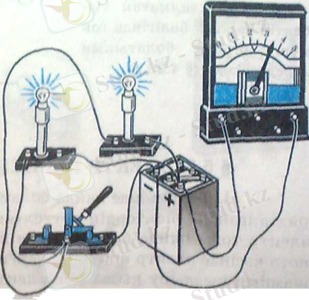 Ток күшін арнайы аспаптармен - амперметрлермен өлшейміз. Амперметр ток күші өлшенетін (2-сурет) аспапқа тізбектеліп қосылады. [2]