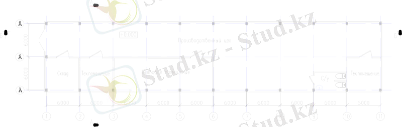 Ғимарат жоспарында көзделеді: өндірістік цех, тұрмыстық үй-жай, техникалық үй-жайлар, қойма, санитарлық торап.