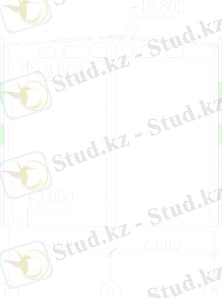 Бағаналар - темірбетонды тұтас, тік бұрышты қима, тірек крандары жоқ ғимараттар үшін. Бағана өлшемдері: 0, 4 х 0, 5 х 10, 5 м.