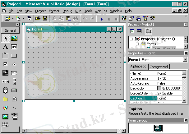 командаларының бірін беру керек ( Project терезесінің сәйкес түймесін не Form1 қатарын екі рет шерту де мүмкін) .