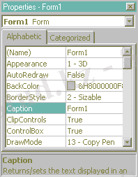 Caption ( Тақырып, бетіне жазу ) - форма терезесінің тақырыбына енгізілетін мәтінді орнату қасиеті. Алғашқы кезде қасиеттер терезесінде тақырып үшін Form1 сөзі енгізіліп қойылған. Оны « Redactor » не басқа тақырыпқа алмастыру қиын емес. Бұл кезде форма тақырыбы да осы сөзге алмастырылады. (Қасиет мәні енгізілген соң КҚ клавишін басып қойған жөн. )