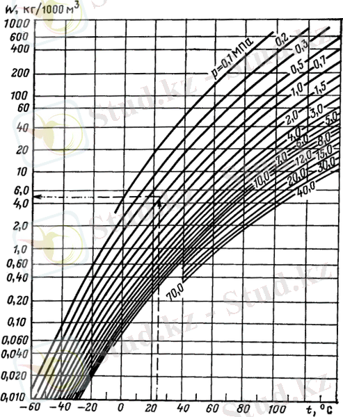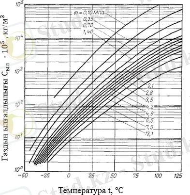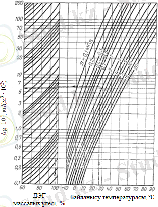 1. 1- сурет - Газдағы су буының максималды мөлшерінің қысым мен температураға тәуелділігі