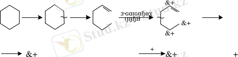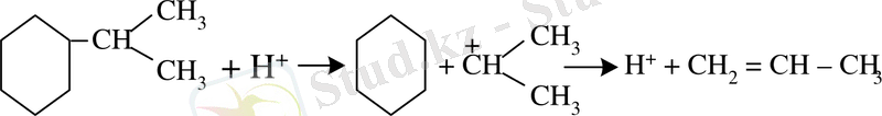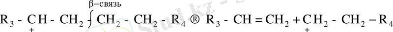 а) β-бөлінуге, нәтижесінде аз молялы массалы алкен түзеді, ол қалған қаныққан бөлігі сутегімен әрекеттесіп кетеді.