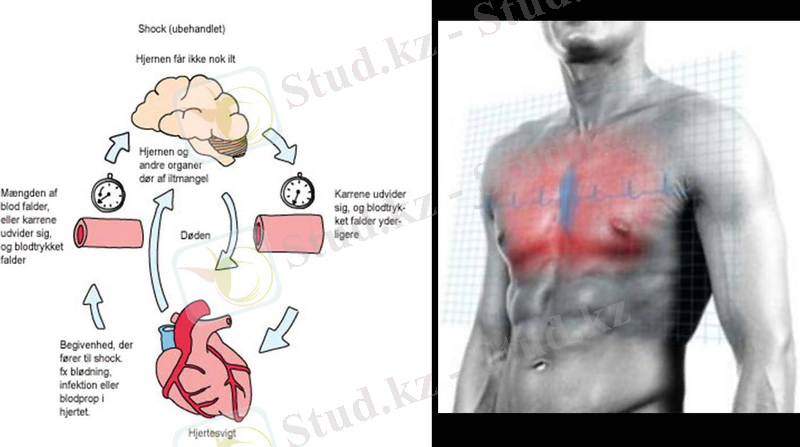 Кардиогендік шок. Миокардтың көлемді инфарктында, жүрек жарылып кеткенде, өкпе артериясы тығындалып қалғанда, жүрек кызметінің кенеттен бұзылуымен байланысты.