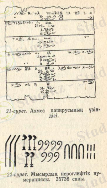 Ғалымдар сақталған папирустардағы жазуларды анықтап танығаннан кейін, бұдан 4 мың жыл бұрынғы кездің өзінде мысырлықтар ондық (бірақ позициялық емес) санау жүйесін қолданған, сондай-ақ құрылыс, сауда және әскери істермен байланысты көптеген есептерді шығара білген.