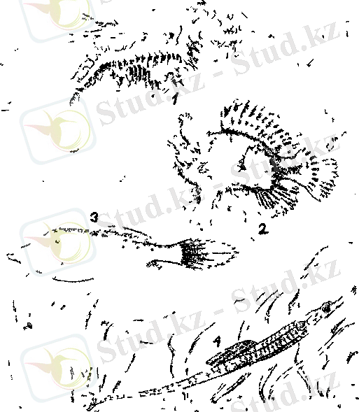 1- теңіз атша-шүберекті (Рһуllорtеrух еques) ; 2 -балық-клоун (Ніstrio һіstrio) ; 3 -алютера (Аlutera scripta) ; 4 - теңіз тебені (Syngnathus acus) .