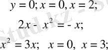 Қисықтардың өзара қиылысу нүктелерін және олардың абсцисса осімен қиылысу нүктелерін табамыз.