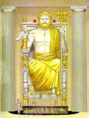 Б. э. д. 433 ж мүсінші Фидий грегтердің ежелгі жоғарғы құдайы Зевстің таңғаларлық мүсіні аяқтады. Олимптегі арнайы салынған шіркеудің ішіне орнатылған бұл мүсін орасан зор. Оның биікігі қазіргі төрт қабатты үйден де биік. Биіктігі 13 м болды. Мүсін құрылысына көп мөлшерде бағалы материалдар: бір тонна піл сүйегі және одан да көп мөлшерде алтын жұмсалды.