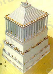 Кіші Азиядағы шағын қалалардың бірі Галикарнастың әкімі патша Карий Мавсол б. з. д. 351 жылы дүние салады. Патша мұрагерлері жер-жерлерден әйгілі құрылысшы, қолөнершілерді шақыртып, патшаның зиратын тұрғызады. Кесене салу ісінде шығыстың құрылыс стилі (көп қырлы пирамидалар) мен гректің ионикалық стилі байланыстырылған. Кесене екі қабаттан тұрады, биіктігі 40-45 метр. Ол тек биіктігімен емес, грек еліне белгілі Скопас, Леохар, Бриансид, Тимофей секілді әйгілі мүсіншілердің қолынан шыққан әр алуан мүсіндер арқылы көркемделуімен де ерекшеленеді. Мавзолей шамамен алғанда 1800 жыл сақталып келді. Ағылшын археологы Ч. Т. Ньютонның айтуынша, ХV ғасырда крестшілер мавзолейді бұзып, оның құрылыс материалдарын Эгей теңізінде қасиетті Петр сарайын (қазіргі Түркияның Бодрум қаласы) салуға пайдаланған.