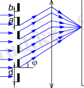 Қазiргi кезде қолданылатын дифракциялық торлардың бiр миллиметрiне 2000-ға дейiн саңлаулар салынады. Гюйгенс-Френель принципiне сәйкес мұндай әрбiр саңлау өз кезегiнде жаңа когеренттi толқын көздерi болып табылады да бұл көзден туындылаған толқындар бiр-бiрiмен интерференцияланады. Егер дифракциялық торға перпендикуляр бағытта параллель жарық сәулелерi түсетiн болса, онда линзаның фокальдық жазықтығында орналасқан экранда қандай да бiр φ бұрышымен дифракциялық максимумдар байқалады. 4. 8-суреттен көрiнiп тұрғанындай бұл максимумдар мынадай шарттарды қанағаттандырады