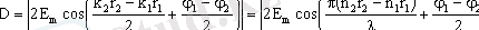 Мұндағы k 1 = 2πn 1 / λ және k 2 = 2πn 2 /λ сәйкес толқындық сандар, ал n 1 және n 2 жарық тарап жатқан орталардың сыну көрсеткiштерi. Бұл жерде есептеулердi жеңiлдету үшiн тербелiс амплитудаларын және жиiлiктерiн бiрдей етiп алдық. Ендi кеңiстiктiң берiлген нүктесiнде осы екi толқынның қабаттасуынан пайда болған қортқы тербелiстi табалық. Ол үшiн элементер математика курсынан белгiлi тригонометриялық өрнектердi пайдалана отырып, мынаны аламыз:
