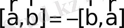 - антикоммутативтік, яғни векторлық көбейтінді ауыстырымдылық заңына бағынбайды;