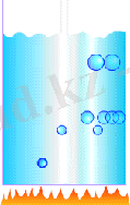 Егер сұйық бiрқалыпты қыздырылмаған болса, онда су көпiршiктерi қалқып шыққан кезде олардың iшiндегi қысым бу конденсациясының есебiнен азаяды да, көпiршiктер жарылып кетедi. Ал сұйық жеткiлiктi қыздырылған болса, онда көпiршiктер жарылуын тоқтатады да, сұйық бетiне еркiн қалқып шығады. Сұйық қайнайды (2. 3 - сурет) .