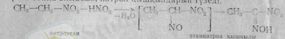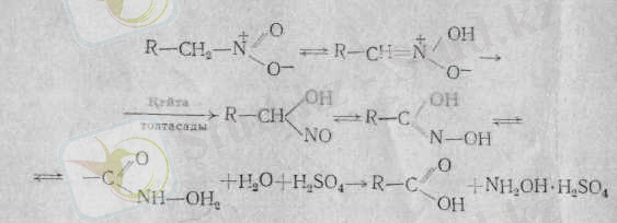 Алифатты нитроқосылыстарға күшті қышқыл әсер етсе, олар карбон қышқылдарына түрленеді: