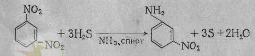 Күкіртті сутек артық болса, екінші нитро топ тотықсызданады.