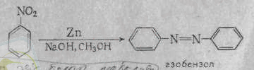 Бұл реакциялардағы мырыш мөлшері артық болса, әуелі азобензол, сосын ол онан әрі сутектеніп, бояу синтезі үшін қажетті шикізат - гидроазобензол түзіледі: