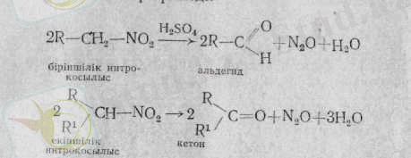 Біріншілік және екіншілік нитроқосылыстарға сұйытылған қышқылдармен қалыпты жағдайда әсер етсе, онда қайта топтаспайақ, оксоқосылыстар түзіледі: