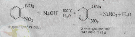 Ароматты қатардағы нитроқосылыстар оларға нуклеофилді реагенттер әсер еткенде, орынбасу реакцияларына түседі. Бұған, әсіресе, бір-біріне арақатынасы орто -немесе, пара -жағдайдағы топтары бар қосылыстар бейімдеу. Мысалы, орто- динитробензол сілті ерітіндісімен қайнатылса, ол opтo -нитрофенолға айналады: