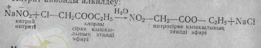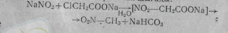 Малон қышқылы сияқты, нитросірке қышқылы да оп-оңай СО 2 -ні бөледі. Хлорлы сірке қышқылының эфирін, оның натрий тұзымен алмастырса, нитрометан шығады: