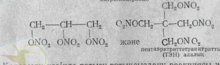 Мәселен, тұйық күйіндегі нитроглицерин кішкентай соққыдан, қозғалыстан қопарылып, жарылып кетеді. Егер оны инфузорлы топыраққа сіңірсе, ол біршама тұрақталады. Оны динамит дейді. Ол да тау-кен жұмыстарында пайдаланылады. ТЭН - ол да оңай қопарылатын қосылыс. Оны негізгі қопарғыш затретінде сирек қолданады.