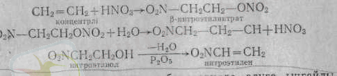Алкендерді нитрлегенде синтезделетін β-нитроспирттерді судандырғанда (дегидратациялағанда) нитроолефиндер алынады: