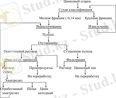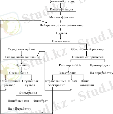 Мырышты гидрометаллургиялық әдіспен алудың өндірістік процессі келесі кезеңдерден тұрады:
