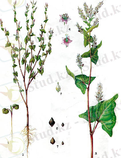 Сурет 16. Қарақұмық гүлінің құрылысы: 1 - қысқабағанды; 2 - ұзынбағанды;