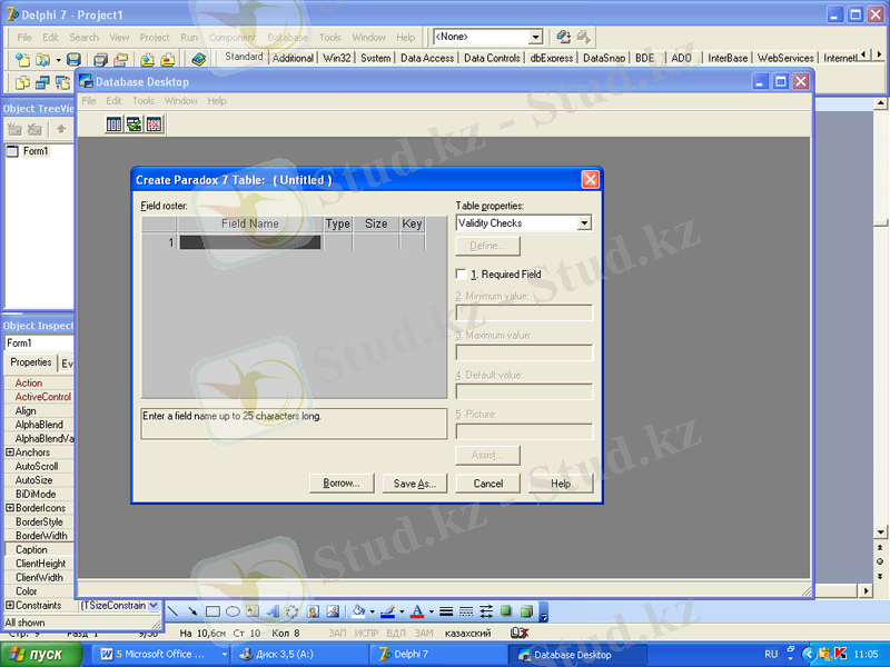 2. 1 DataBase Desktop көмегімен мәліметтер қорын құру