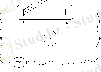 Фотоэффект құбылысын байқауға болатын тiзбектiң сызбасы мына жерде келтiрiлген.
