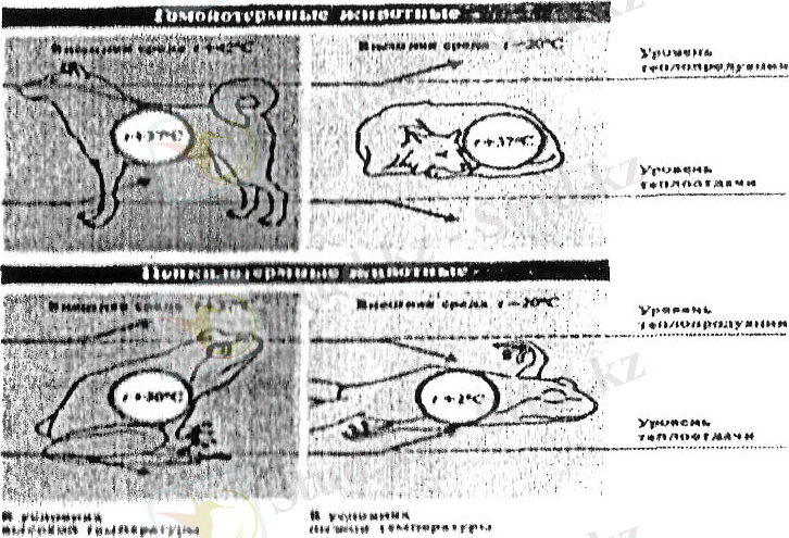 Бұндай қасиет жануарлардағы энергия алмасуының жоғары деңгейде жүретініне байланысты. Пойкилотермді (суыққандылар) роікіlоз - өзгергіш деген грек сөзінен шыққан организмдер өздерінін дене температурасын бірқалыпты деңгейде ұстап тұра алмайды, олардың дене температурасы қоршаған ортаға тәуелді. Өйткені бұл организмдердің энергия алмасуы жылы қанды жануарларға қарағанда төмен.