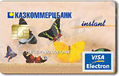 Visa Electron Instant Card - Казкоммерцбанк жаңа қызметті - Visa Electron Instant Card әмбебап төлем карточкасын ұсынады, мұны кез келген адам банкке тікелей хабарласып, қажетті құжаттарын ресімдегеннен кейін ала алады. Visa Electron Instant Card - Казкоммерцбанктің төлем карточкалары бойынша ұсынылатын барлық банктік қызметтерге толық мәнді қол жеткізуді қамтамасыз ететін халықаралық атаулы емес төлем карточкасы, әрі сонымен бірге біраз артықшылығы бар - мезетте алу. Бұл төлем карточкасының және оны рәсімдеу шапшаңдығы мен ыңғайлылығының үйлесуінде.