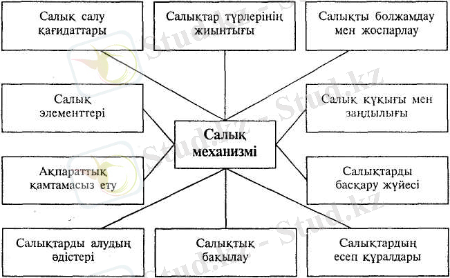 Қазақстан Республикасының қазіргі салық жүйесі салықтарды құру мен алудың нақтылы әдістерін анықтайды, салықтың тиісті элементтері арқылы салық салудың тәртібін белгілейді.