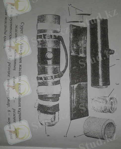 1-жасанды қынаптың денесі, 2- резеңке түтік, 3, 4-шәуеттосқыштар, 5-резеңке шығырықтар, 6- шәует алуға дайын жасанды қынап.