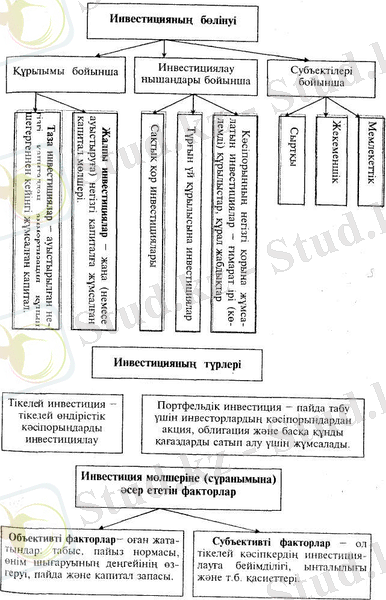 1) инвестициялардың түрлері;