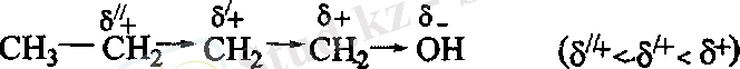 Молекулада полюсті а-байланыстың болуы, көршілес екі-үш ст-байланыстардьщ полюстігін өзгертеді де, көршілес атомдарда жартылай зарядтар (5 + , 5") пайда болады. 8 + - Электрон бүлтының жетіспеушілігін, ал 8" электрон бұлтының артқанын көрсетеді.