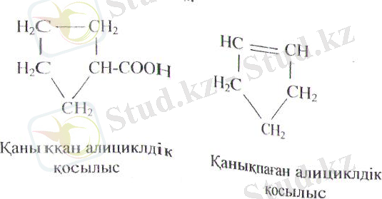 Ароматтық сипаты жоқ карбциклдік қатардағылар алициклдік қосылыстарға жатады. Алициклдік қосылыстар да алифаттағылар сияқты қанығу дәрежесі бойынша қаныққандар мен қанықпағандарға бөлінеді.
