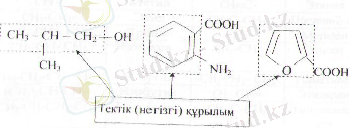Топтың үлкенін анықтаған соң қосылыстың тектік құрылымы деп аталатын бастапқы қаңқаны (тізбекті) табады. Тектік құрылым - ол аталуға негіз болатын молекуланың құрылымдық бөлігі (негізгі) . Ациклдік қосылыстардағы басты (негізгі) көміртек тізбегі тектік құрылым болып саналады, ал цикл (сақина) - карбоциклдік пен гетероциклдікте: