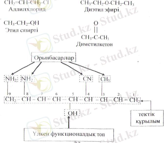«Функционалдық топ» түсінігіне шартты түрде көмірсутекті орынбасарлар енгізілмей отыр, айталық, винил, фенил.