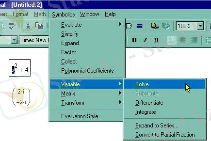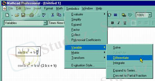 Math CAD бағдарламасының көмегімен аналитикалық есептеу негіздерін, туынды, интеграл және де алгебралық теңдеулерді шешу мүмкіндігін қарастырады. Осы операцияларды орныдау Symbolics (Символика) менюінде орындалады. Ол Variable (Переменная) менюнде орналасқан.