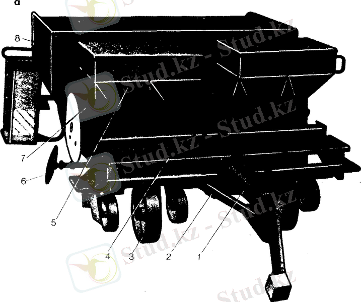 Тыңвйтқыш сепкіш бір аппараттың n айналымында сепкен тыңайтқыштың 100-ге көбейтілген массасы 1 га жерге себілетін нормаға сай келеді. Жапқыш рычагтың қалпын өзгерте отырып, белгіленген себу нормасын алады,