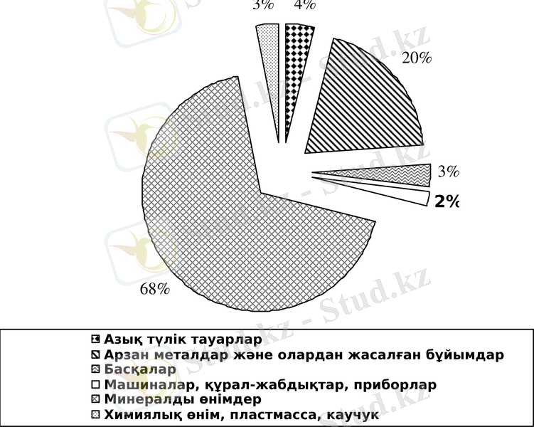 2-сурет-Қазақстан Республикасының 2007жылдың қаңтар-қараша айындағы тауар топтары бойынша экспорттың құрылымы.